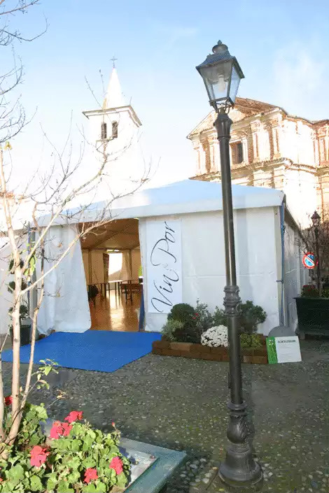 Il Padiglione di "Vin e Por" davanti alla Confraternita.